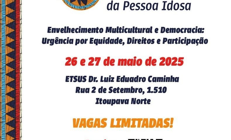 Evento será nos dia 26 e 27 de maio com o tema. Envelhecimento Multicultural e Democracia: urgência por Equidade, Direitos e Participação?