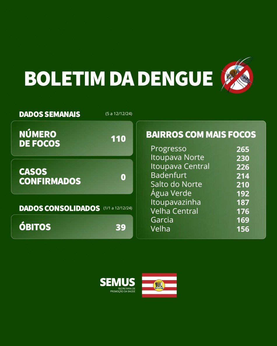 Desde o último boletim, divulgado em 5 de dezembro, a cidade registrou 44 novas notificações e o foco é justamente o monitoramento destas novas notificações recebidas conforme a contagem das semanas epidemiológicas. Nenhum caso foi confirmado nos últimos sete dias. Em relação aos óbitos, desde a primeira semana de 2024, o município segue com 39 registros.