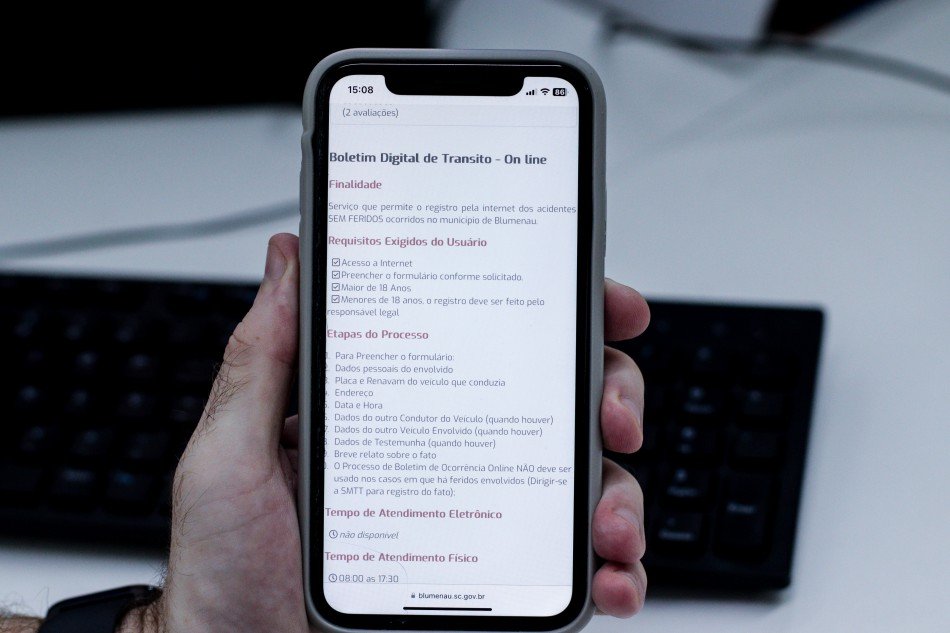 A Prefeitura de Blumenau, por meio da Secretaria Municipal de Trânsito e Transportes (SMTT), informa que o registro de boletins de ocorrência de acidente de trânsito será feito exclusivamente pela internet a partir do dia 5 de março.
