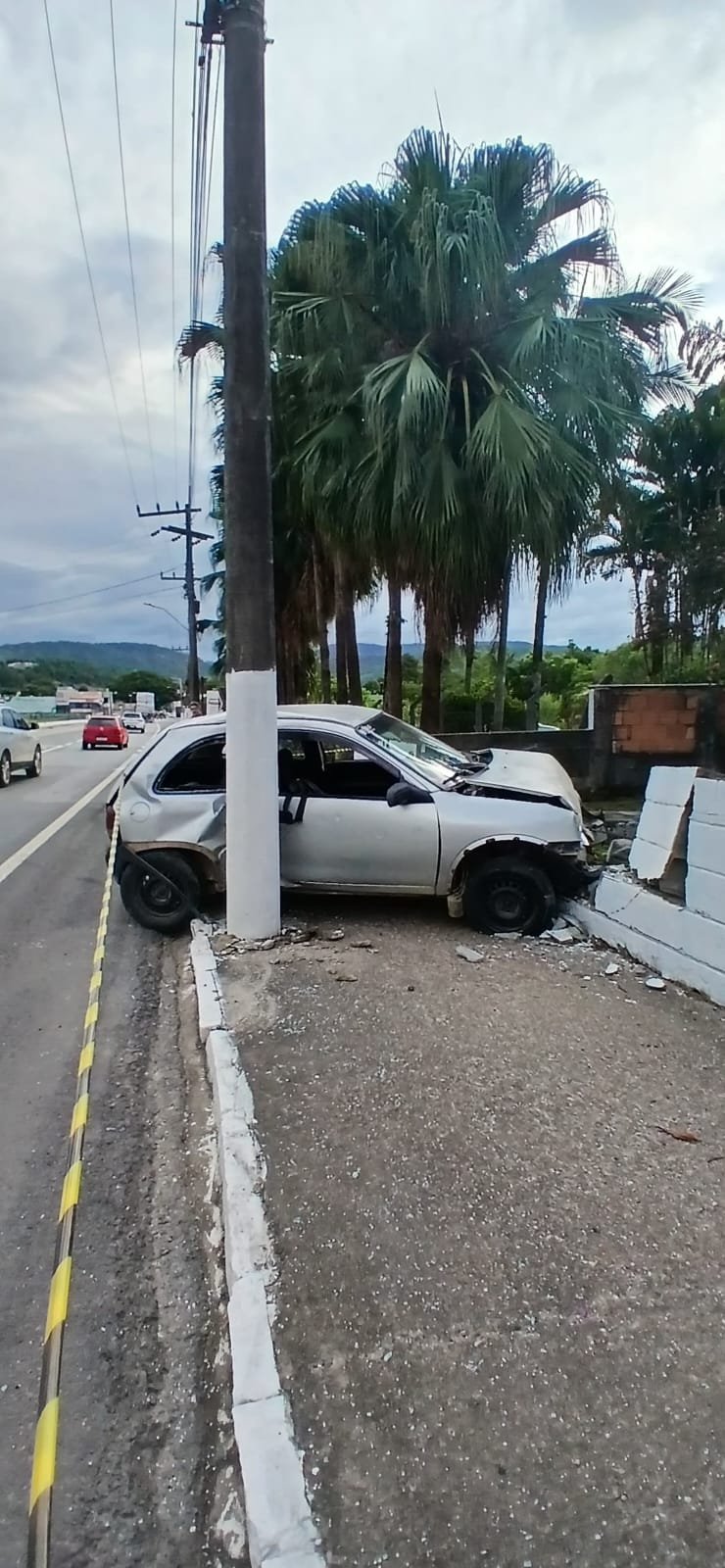 COLISÃO DE CARRO EM POSTE NA BR-470, km 98