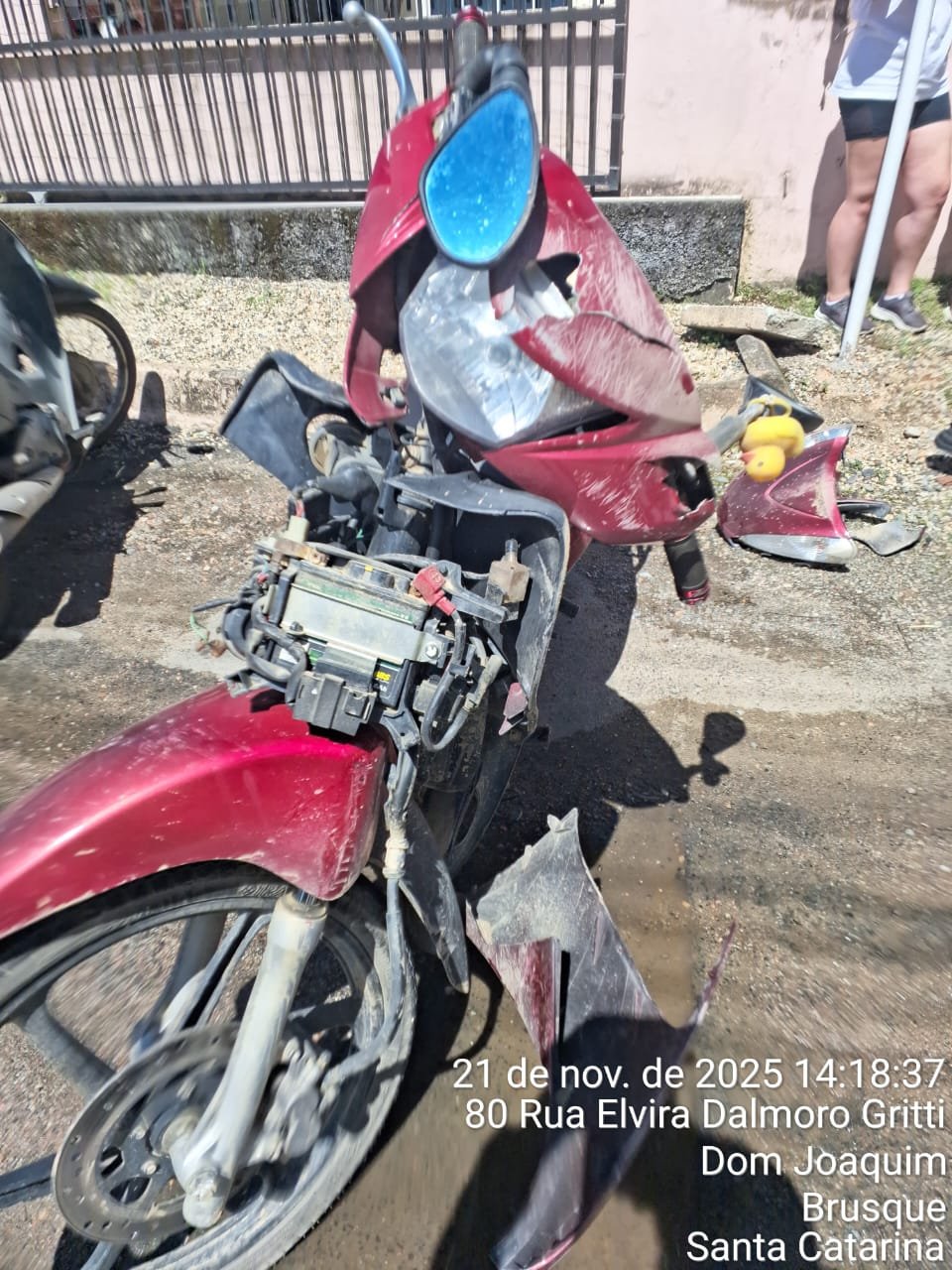 Ocorrência de acidente de trânsito envolvendo colisão entre automóvel e motocicleta. O veículo focus, prata, era conduzido por uma feminina de de 38 anos, que encontrava-se ilesa no local. A motocicleta honda biz vermelha, era conduzida por um masculino 19 anos, que apresentava-se consciente, orientado. Relatou dores em ambos os punhos e apresentava escoriações no dorso dos membros superiores. Negou dor em coluna, porém referiu cefaleia. Foi realizada imobilização completa, com colar cervical, maca rígida e talas bilaterais nos membros superiores. O paciente foi colocado em protocolo de a APH e posteriormente encaminhado ao pronto-socorro do Hospital Azambuja para avaliação médica.
