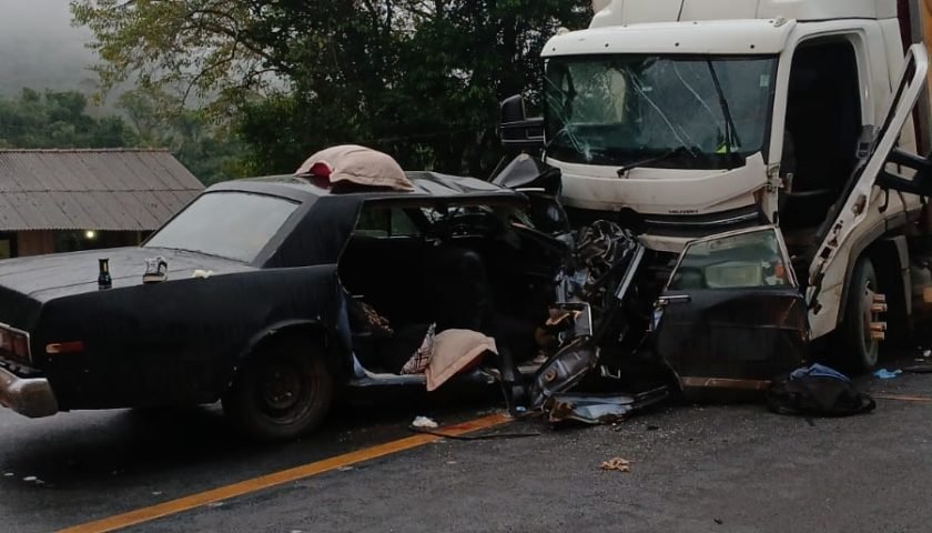 TRÊS PESSOAS MORREM EM UM GRAVE ACIDENTE ENVOLVENDO CARRO E CAMINHÃO NO KM102 DA BR470