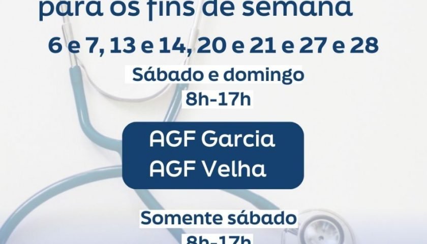 Saúde: AGFs Velha, Garcia e Itoupava seguem abertos nos fins de semana de setembro. Horário de…