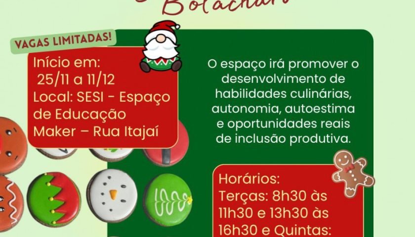 Atividade promovida em parceria com o Sesi e empreendedores locais oferece formação inclusiva de bolachas natalinas.…