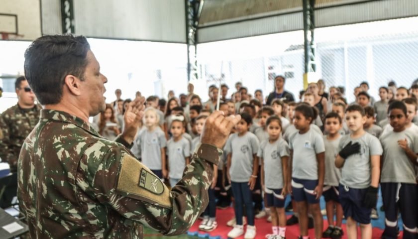 Estudantes vivenciam momentos de patriotismo e cidadania em evento com parceria com o 23º BI A…