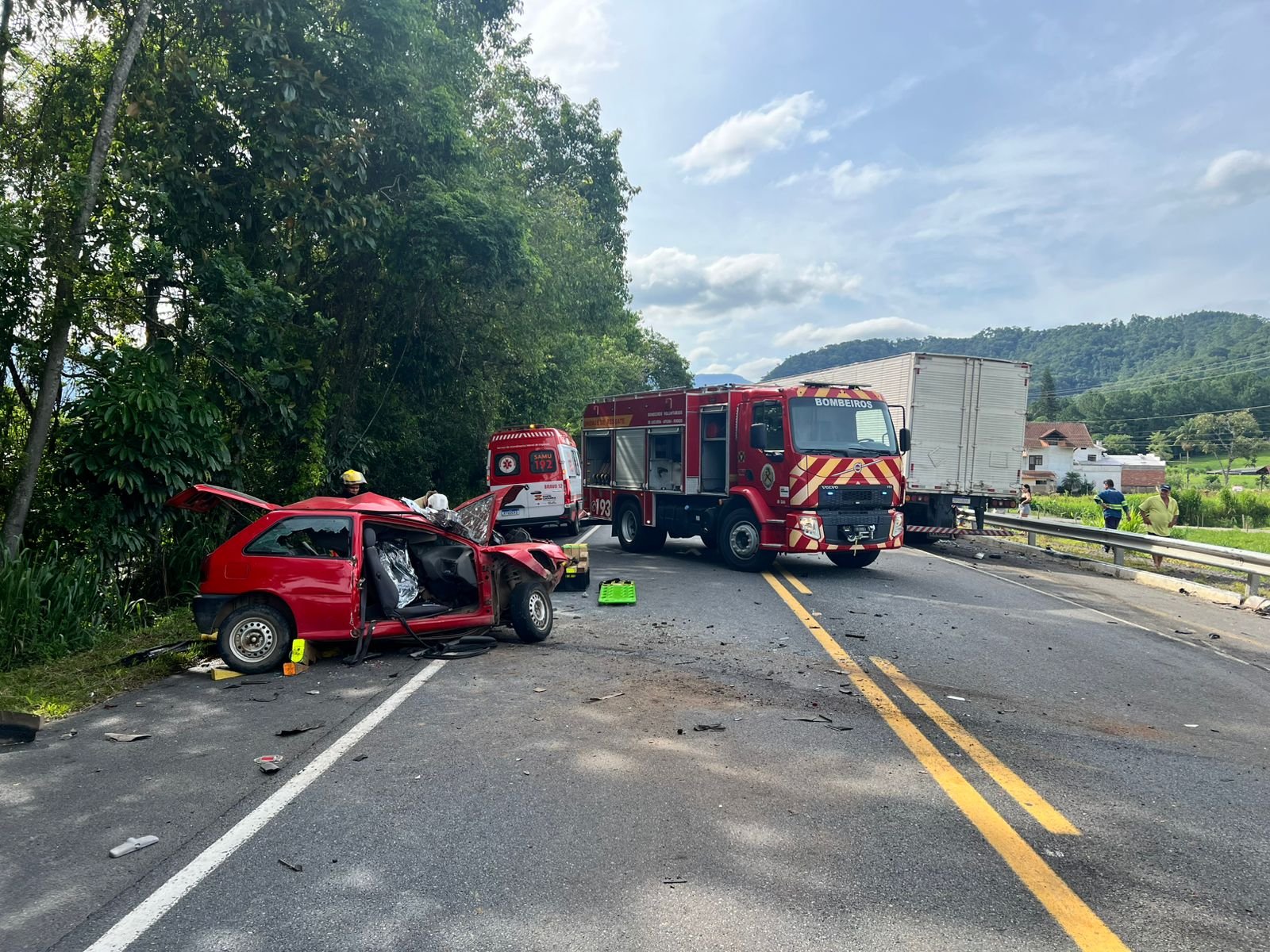 No carro duas vítimas, sendo: uma vítima, adulto de 46 anos, preso às ferragens veio a óbito e ficou sob os cuidados dos Bombeiros Voluntários da União e Polícia Científica; a segunda vítima, feminina, adulta de 45 anos, com Traumatismo Crânioencefálico (TCE) grave, foi conduzida para o Hospital Santa Isabel de Blumenau pela Bravo-02 tripulada pela equipe aeromédica do SAMU/SC.