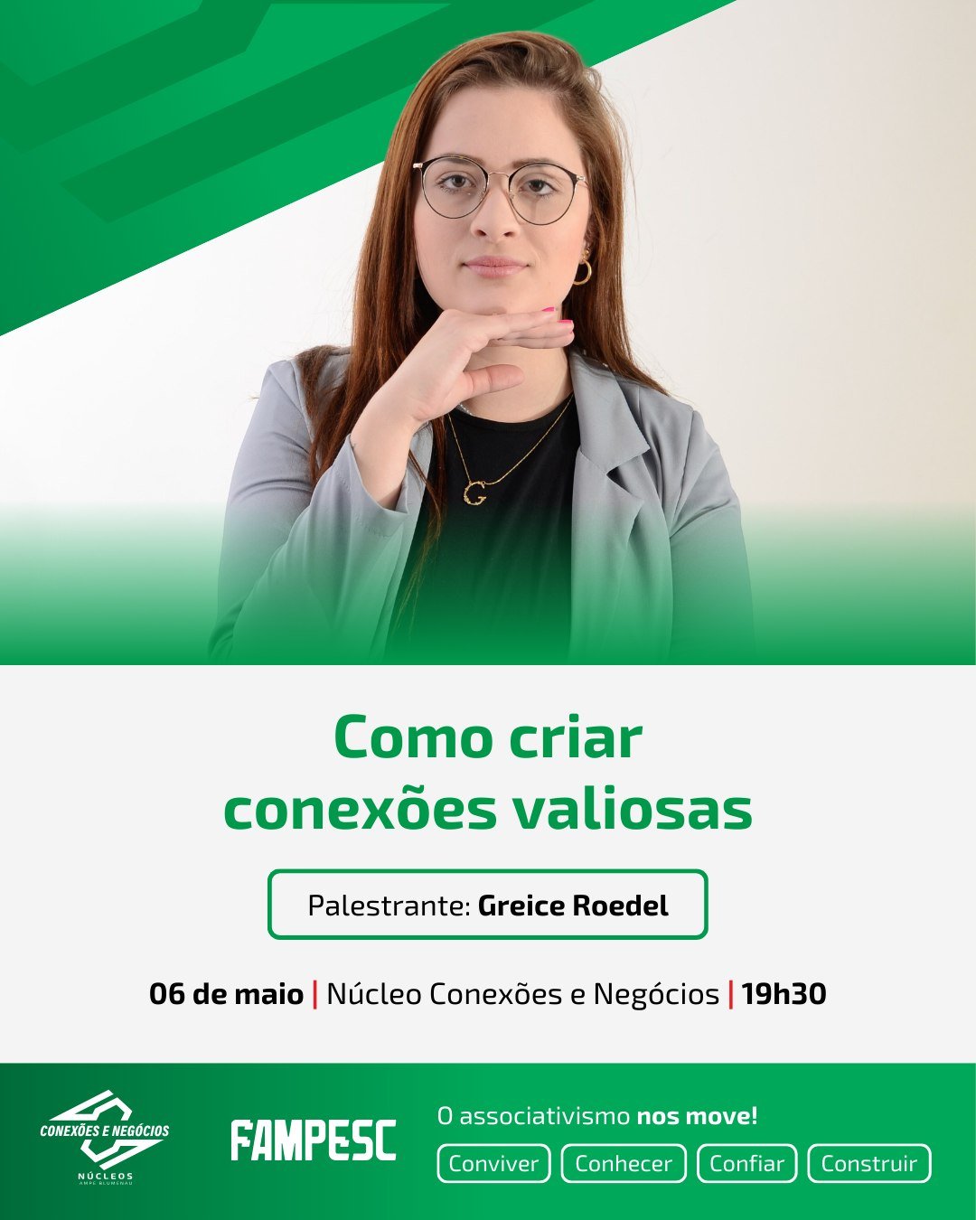 Nem toda troca vira parceria. Nem todo contato vira oportunidade. Pensando nisso, o Núcleo de Conexões e Negócios da AMPE Blumenau preparou um encontro especial com Greice Roedel, fundadora da Agência Voice, estrategista de marketing e especialista em transformar networking em relacionamentos duradouros — com propósito, presença e posicionamento.