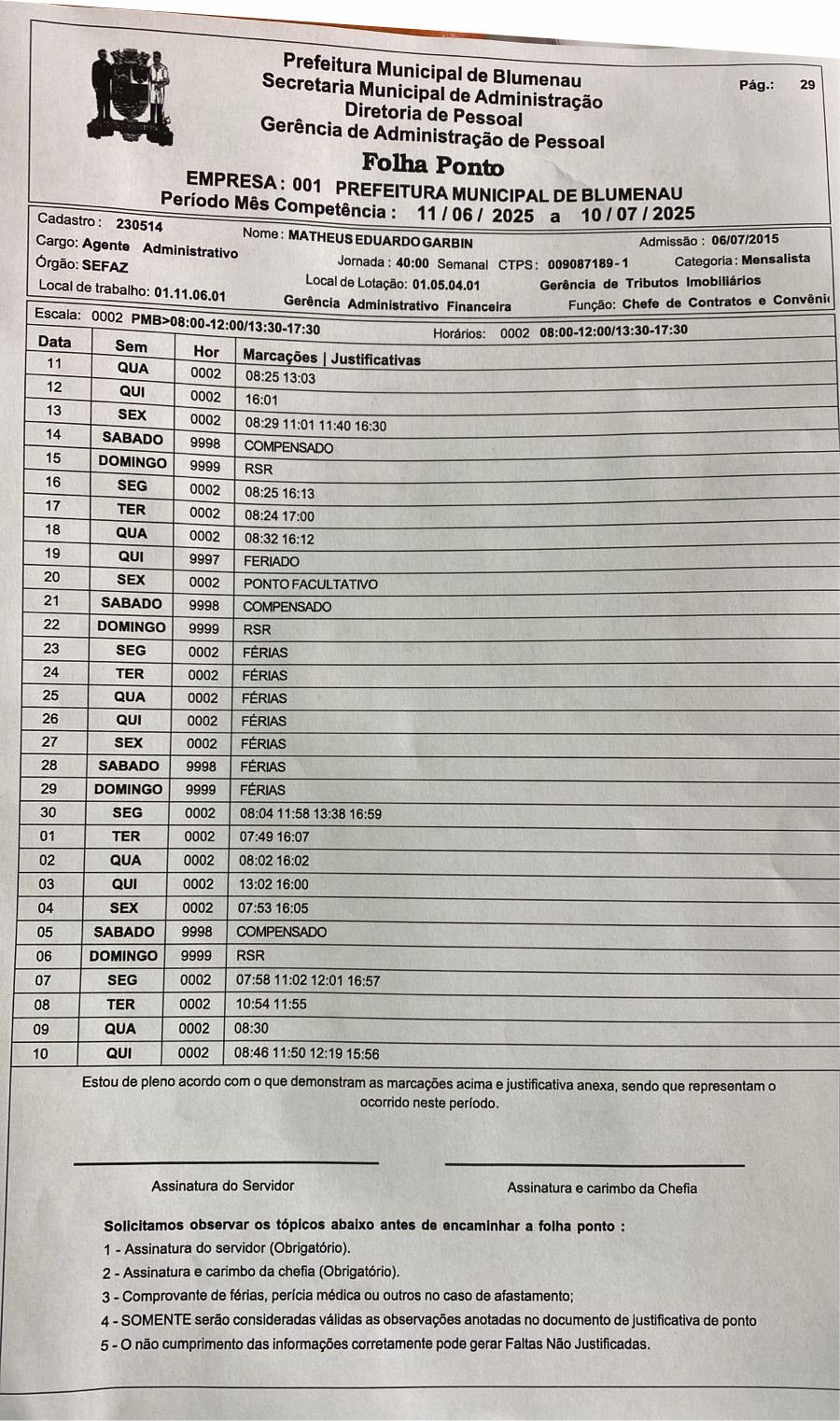 Segundo documentos obtidos com exclusividade pelo jornalismo da Folha HatsNews, Matheus Eduardo Garbin atuava anteriormente como Agente Administrativo no SAMAE e foi novamente alocado, já na gestão atual, pelo secretário de Serviços Urbanos (SEURB), Daniel Hostin — também do MDB. A recontratação teria sido acompanhada da concessão de uma gratificação de 100%, embora, conforme fontes internas, Garbin praticamente não cumpra expediente.