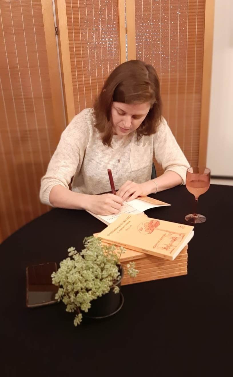 Shay Luz nasceu em Blumenau, em 1989, é artesã, empreendedora e cozinheira em dias de inspiração. Na noite do lançamento de seu livro de estreia, a escritora contou parte de sua trajetória, lembrando que sempre esteve ligada à literatura e que suas memórias afetivas junto à biblioteca municipal estão vivas. Disse que frequenta e se sente em casa, quando visita o local em busca de conhecimento e de momentos especiais de leitura.