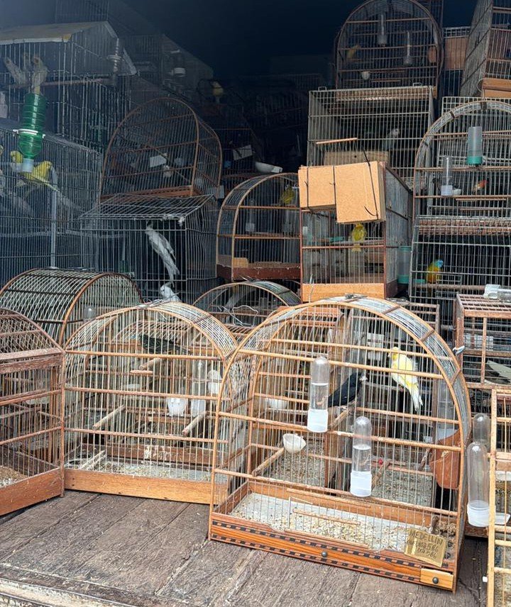 A operação foi realizada após denúncia recebida pela equipe do Crepread. No local, foram encontradas mais de 200 aves, entre trinca-ferros, azulões, calopsitas, codornas e aves exóticas, mantidas em gaiolas sujas, sem condições adequadas de higiene e manejo. Além disso, as aves estavam sob posse irregular, sem a devida autorização legal. Coelhos e hamsters também foram encontrados e resgatados pela equipe.