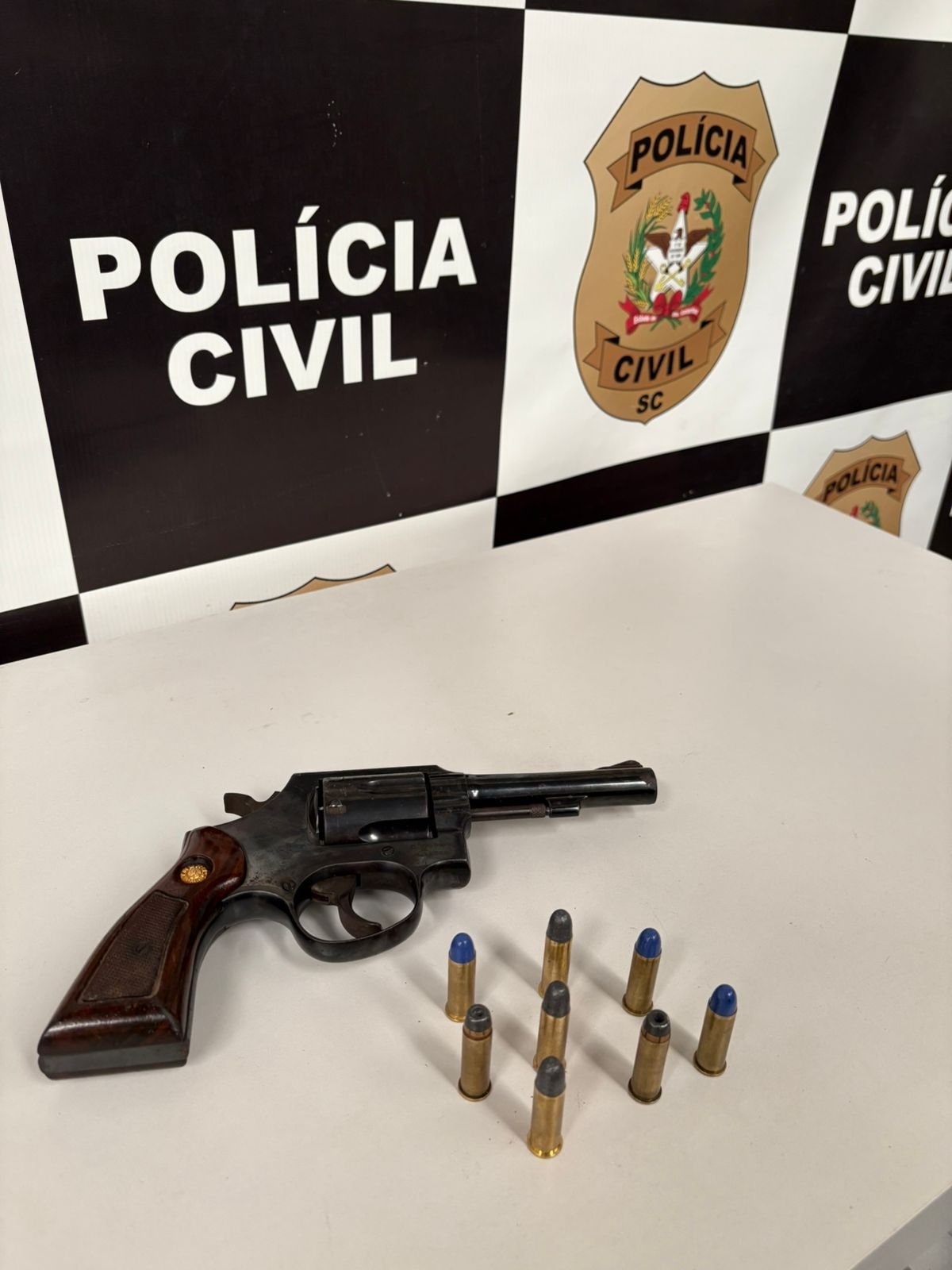 Nesta quinta-feira (15/01), a Polícia Civil do Estado de Santa Catarina, através da Delegacia de Gaspar, realizou diligências em investigação relacionada ao combate da violência doméstica contra a mulher e apreendeu arma de fogo e munições na residência do suspeito, no bairro Gaspar Grande.