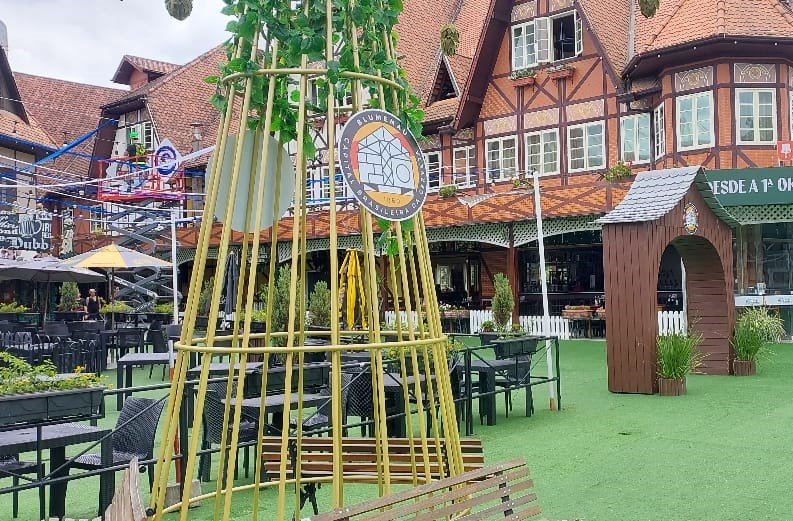O Parque Vila Germânica, em Blumenau (SC), é palco de grandes eventos. Um deles, o Festival Brasileiro da Cerveja, começa a ser vivenciado pelos corredores do complexo através da cenografia: bandeiras e até uma “árvore de lúpulo” começam a contagem regressiva para o conjunto de eventos, que acontecem de 12 a 15 de março de 2025 na Capital Brasileira da Cerveja.