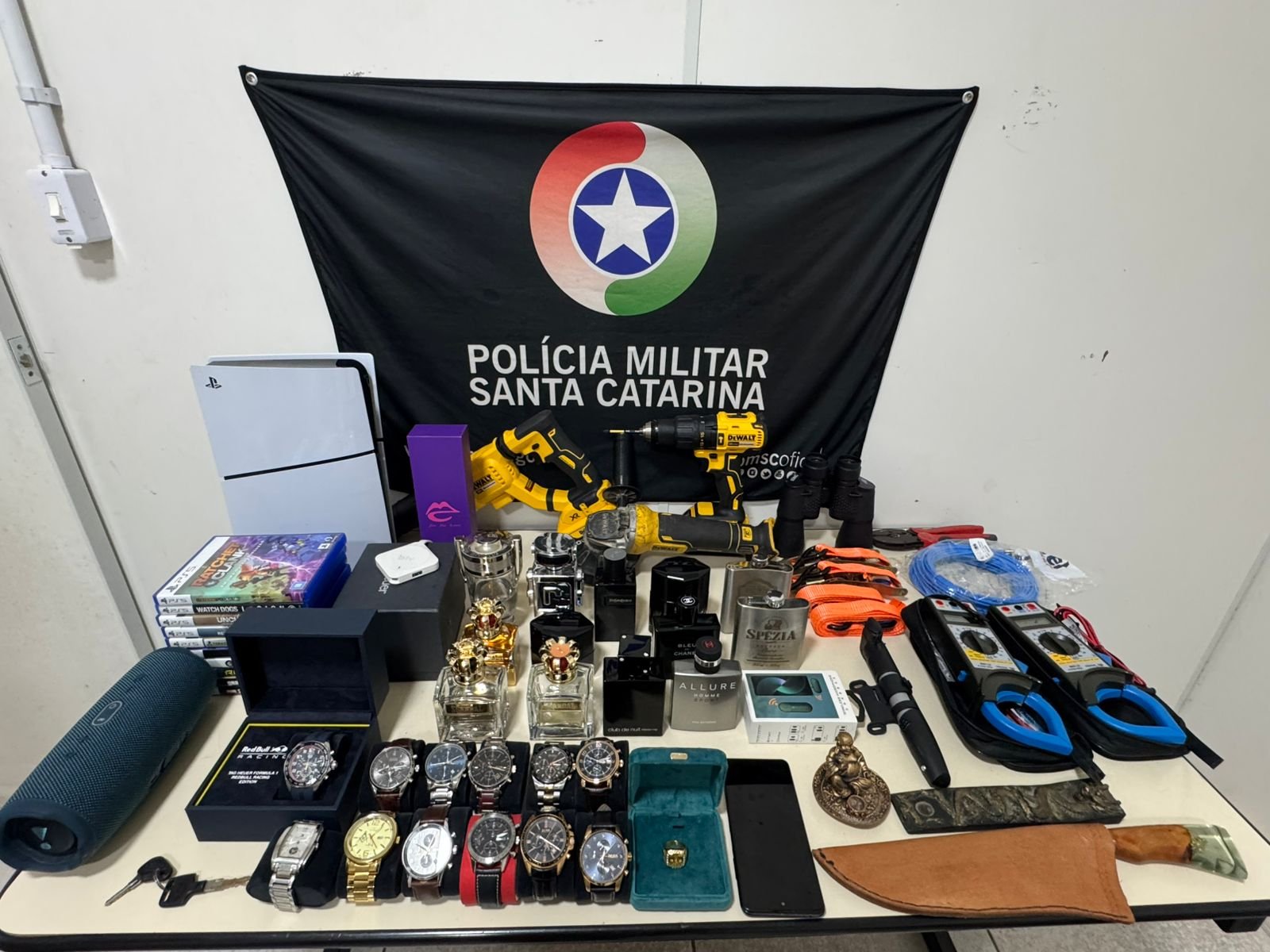 No interior da residência, os policiais localizaram os produtos furtados e um homem de 22 anos, que confessou a autoria do crime. A vítima reconheceu tanto o agente quanto os objetos recuperados.
