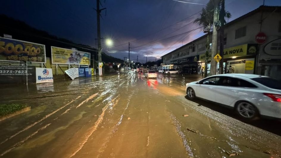 Ruas se transformam em estradas de barro após forte temporal em Jaraguá do Sul