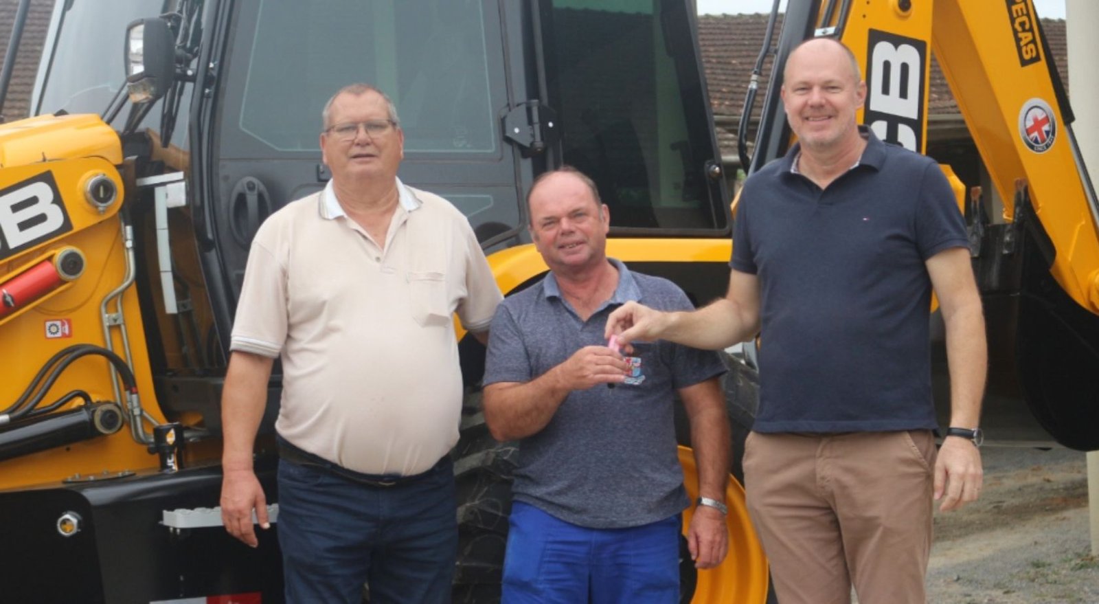 O prefeito de Pomerode, Ércio Kriek, entregou uma nova máquina retroescavadeira a Secretaria de Obras. Na manhã desta segunda-feira (11) o prefeito de Pomerode, Ércio Kriek, entregou uma nova máquina retroescavadeira a Secretaria de Obras. Este foi mais um equipamento adquirido com recursos próprios nos últimos oito anos, o que diminuiu os custos de manutenção da prefeitura.