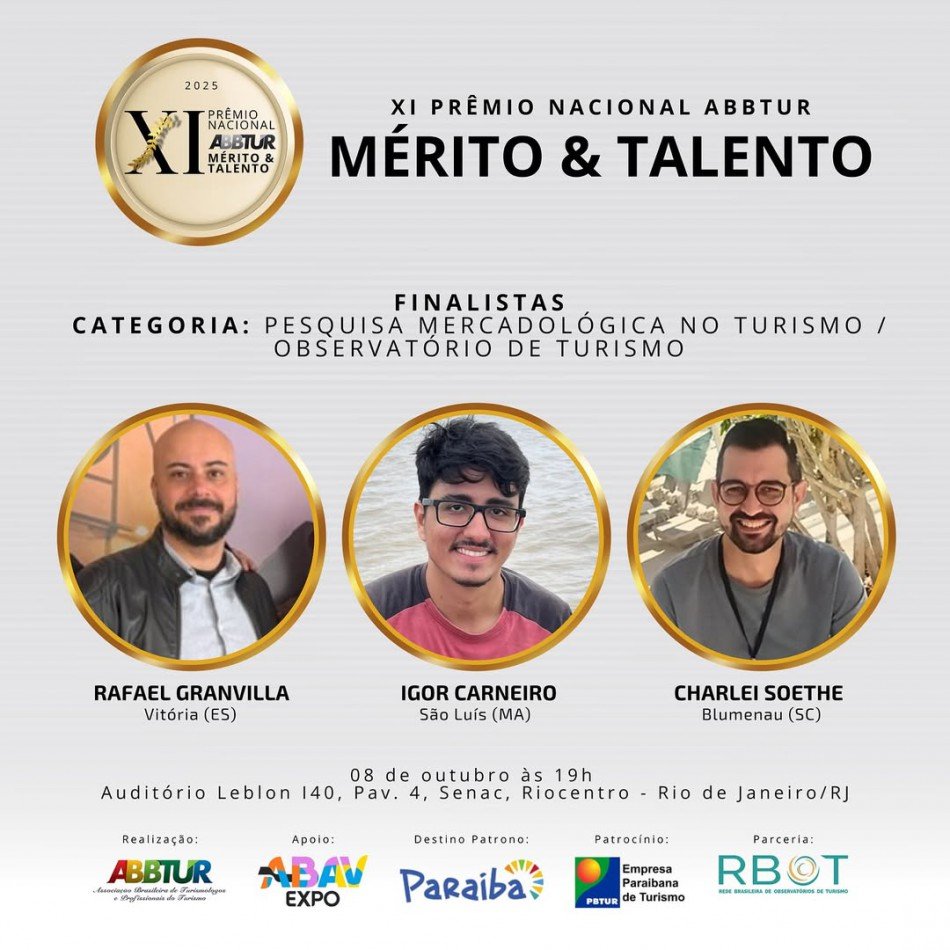 “Receber esse reconhecimento nacional é uma grande honra — não apenas de forma pessoal, mas também por colocar Blumenau em evidência no cenário do turismo brasileiro. Este prêmio reforça a importância de basearmos nossas ações em dados, pesquisas e indicadores, elementos essenciais para a formulação de políticas públicas mais eficientes, responsáveis e sustentáveis para o setor”, destacou Charlei Soethe, turismólogo e coordenador do Observatório de Turismo de Blumenau.