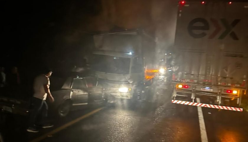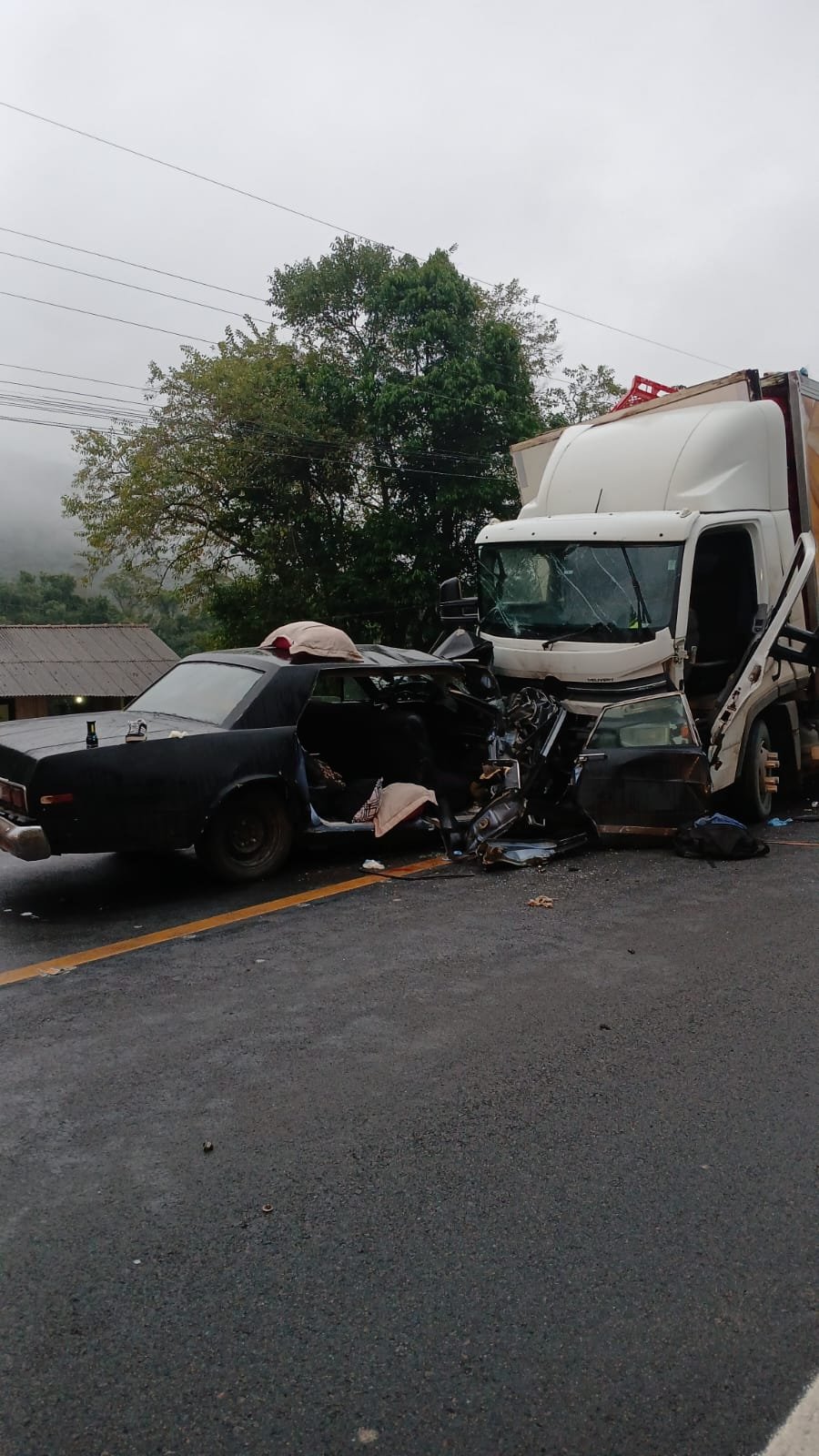 TRÊS PESSOAS MORREM EM UM GRAVE ACIDENTE ENVOLVENDO CARRO E CAMINHÃO NO KM102 DA BR470
