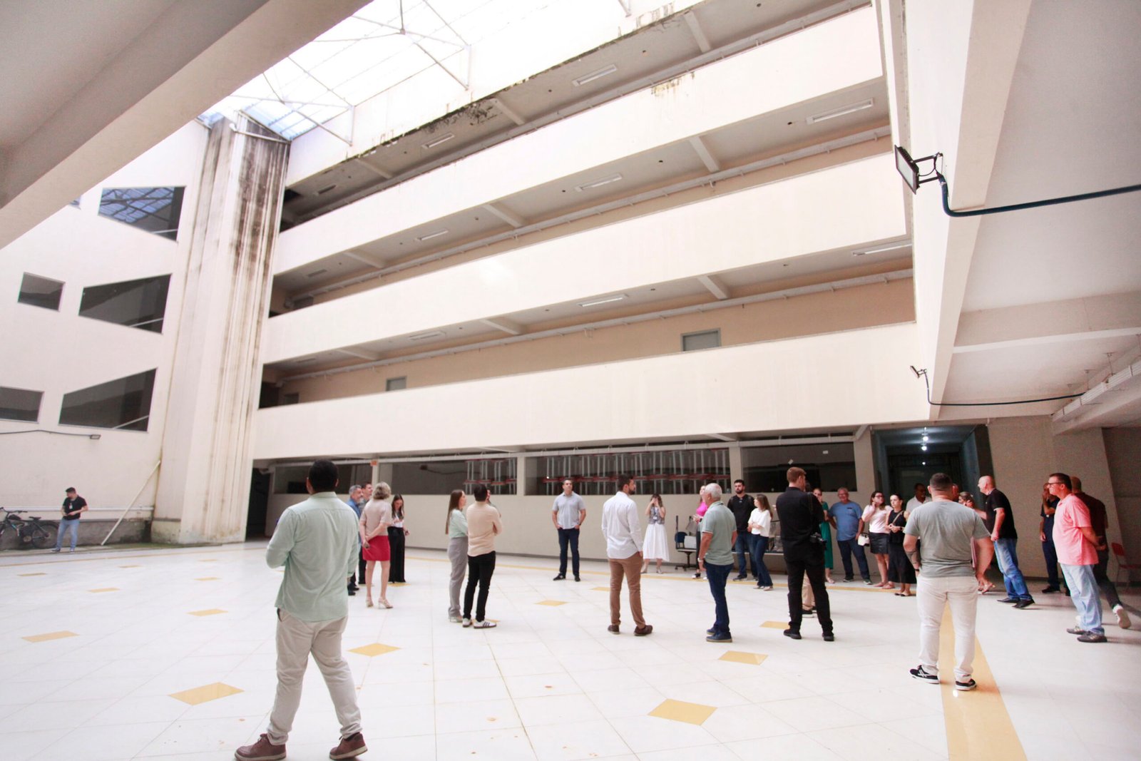 Vereadores e servidores da Câmara de Blumenau fizeram, na manhã desta segunda-feira (24), uma visita ao prédio público da Rua Capitão Santos, no bairro Garcia, que pode ser a nova sede do Legislativo. O convite partiu do presidente da Casa, Ailton de Souza – Ito (PL), que fez questão de levar o grupo para conhecer o imóvel.